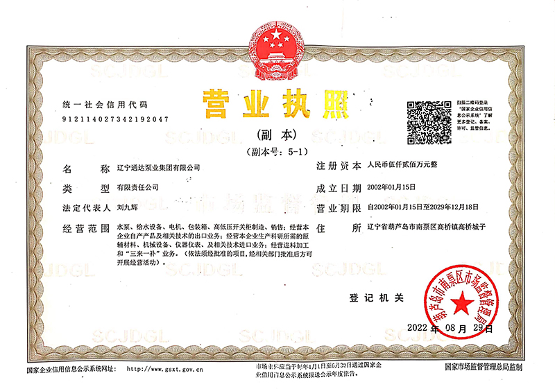 从产品的开发、设计、生产、销售都严格按照ISO9001国际质量体系认证标准进行管理和实施。技术、质量水平成熟,生产检测设备先进,拥有树脂砂、覆膜砂造型铸造生产线、中频电炉冶炼、高精数控机床、物理化学实验室。设计生产的所有产品各项性能指标,均达到了国家工业泵质量监督检验中心的要求。煤矿企业所需要的各种系列矿用水泵,都具有国家安全生产监察总局颁发的《矿用产品安全标志证书》。是中国通用机械泵业协会、辽宁省对外贸易企业协会团体会员单位,中华人民共和国进出口企业。2012年中国通用机械工业协会授予集团公司所在地“中国打渔山泵业基地”称号。中国通用机械工业协会隋永滨会长为其题词“建设好泵业基地,为国民经济建设服务”。